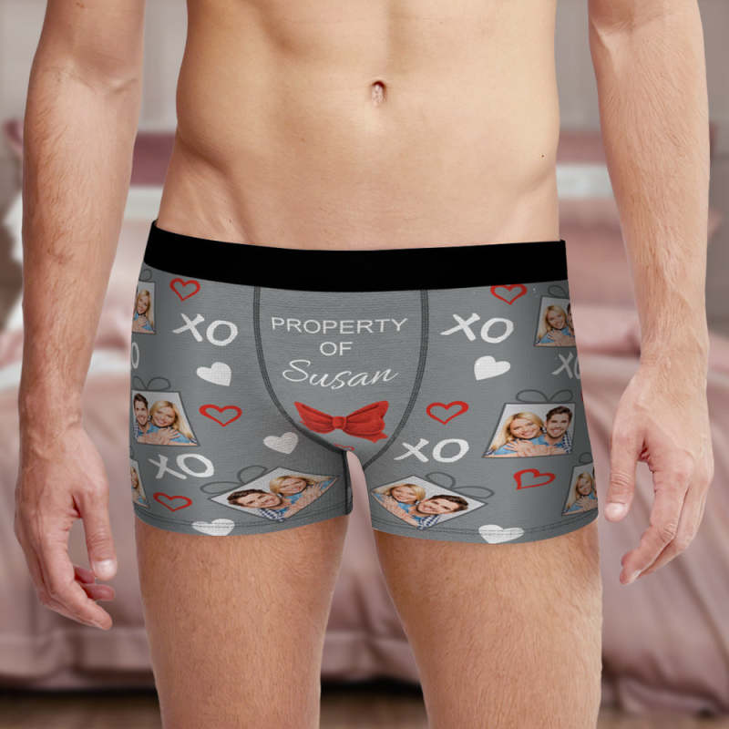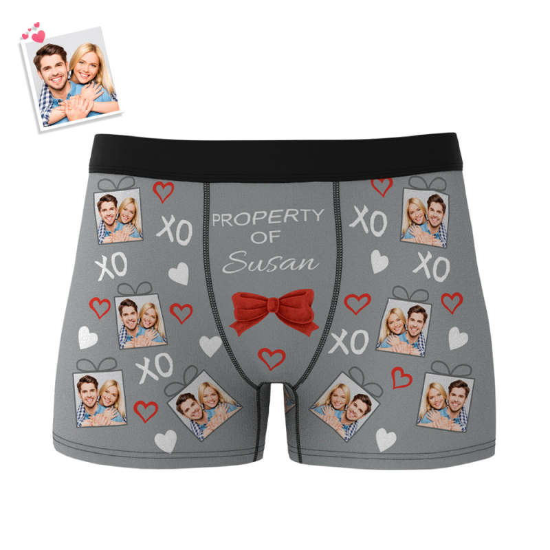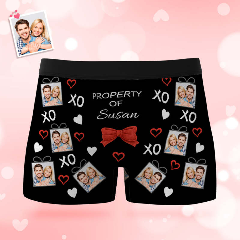 Custom Men's Photo Boxers Bow Tie Personalized Property Of Face Underwear