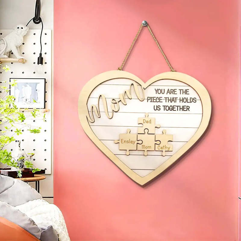 Custom Mom You Are the Piece That Holds Us Together Puzzle Piece Sign Mother's Day Gifts