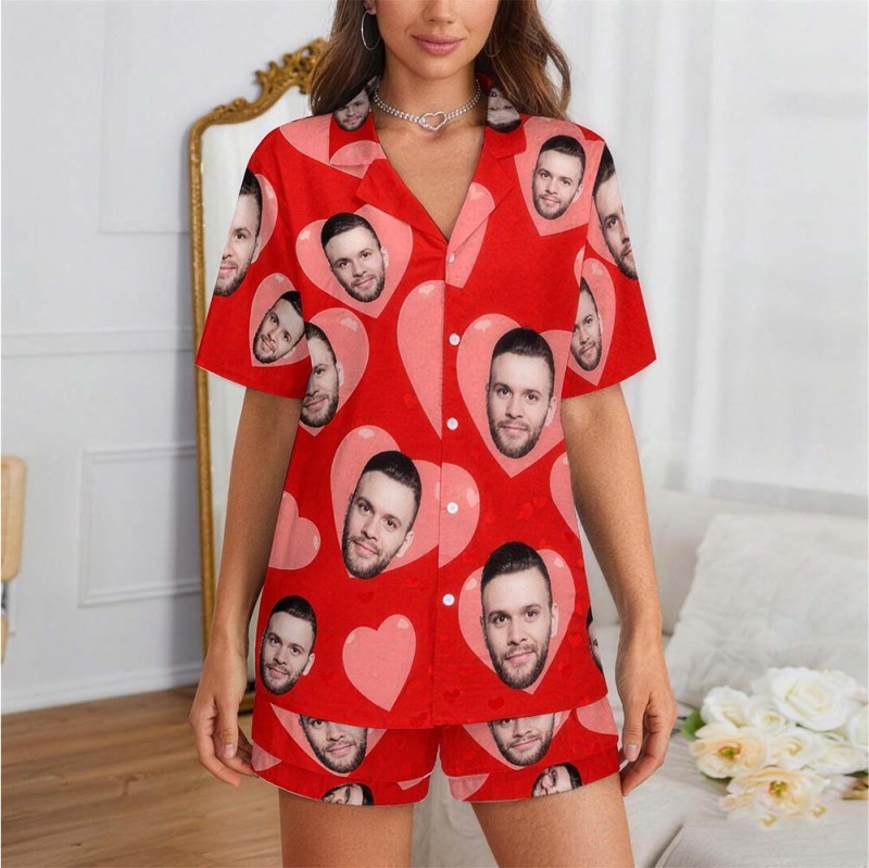 Custom Pajamas with Embedded Photo Hearts Adjustable Waistband Valentine's Day Gift