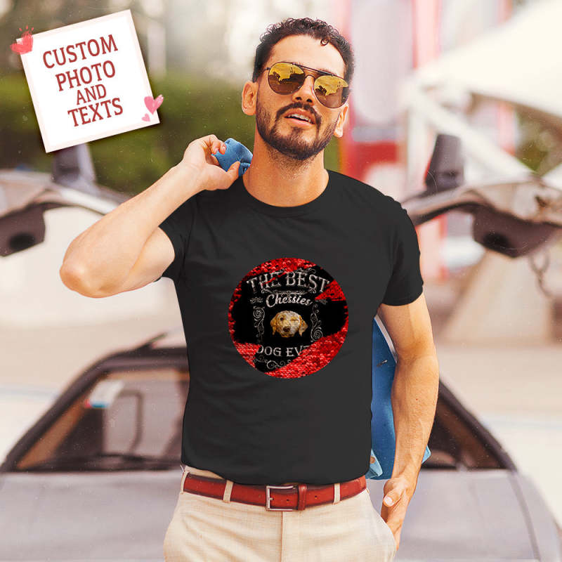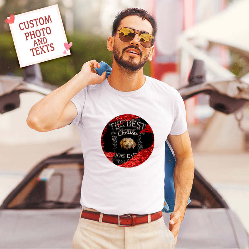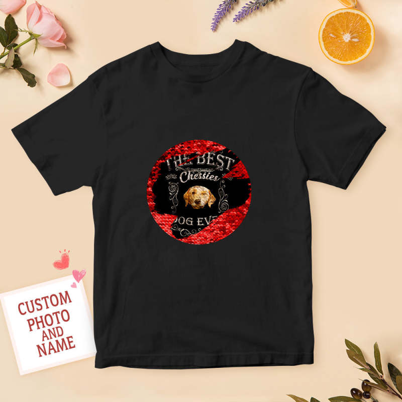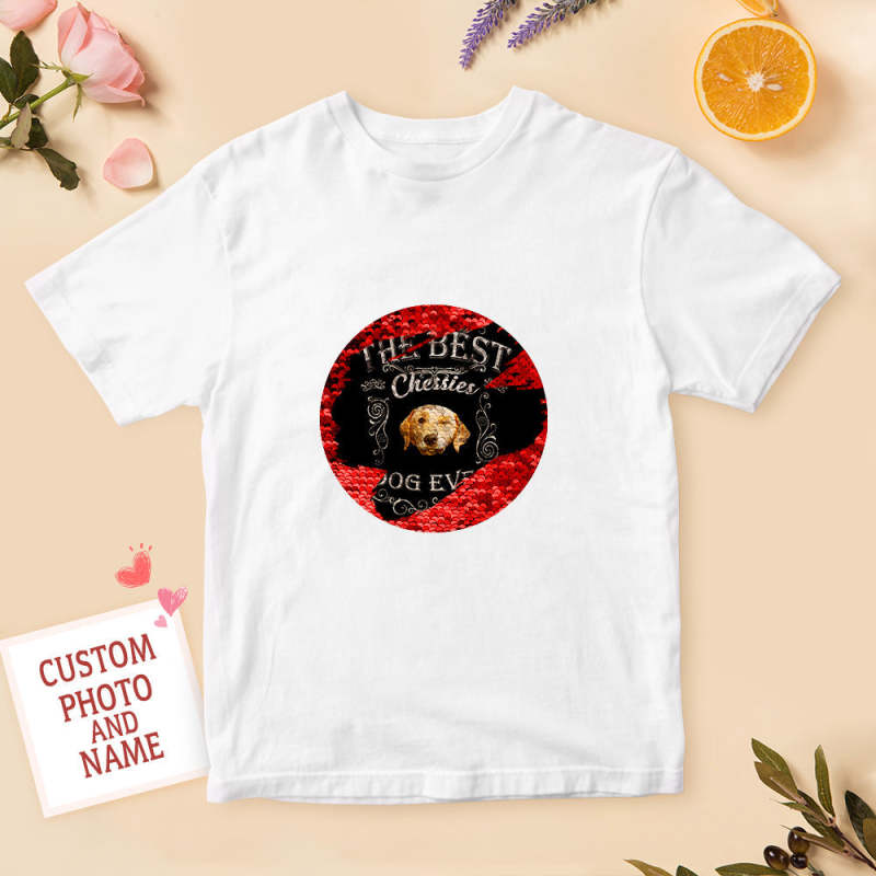 Custom Pet Sequin T-shirt Personalized Sequin T-shirt with Photo and Text