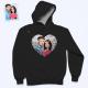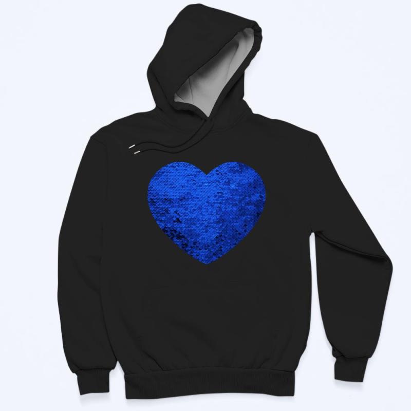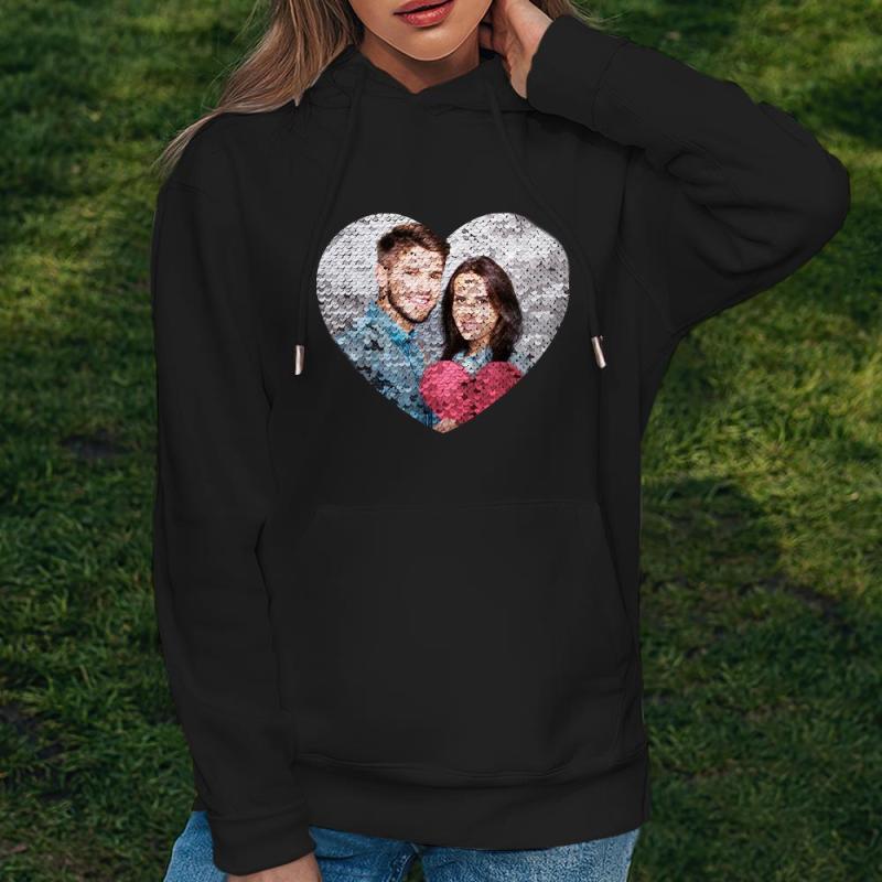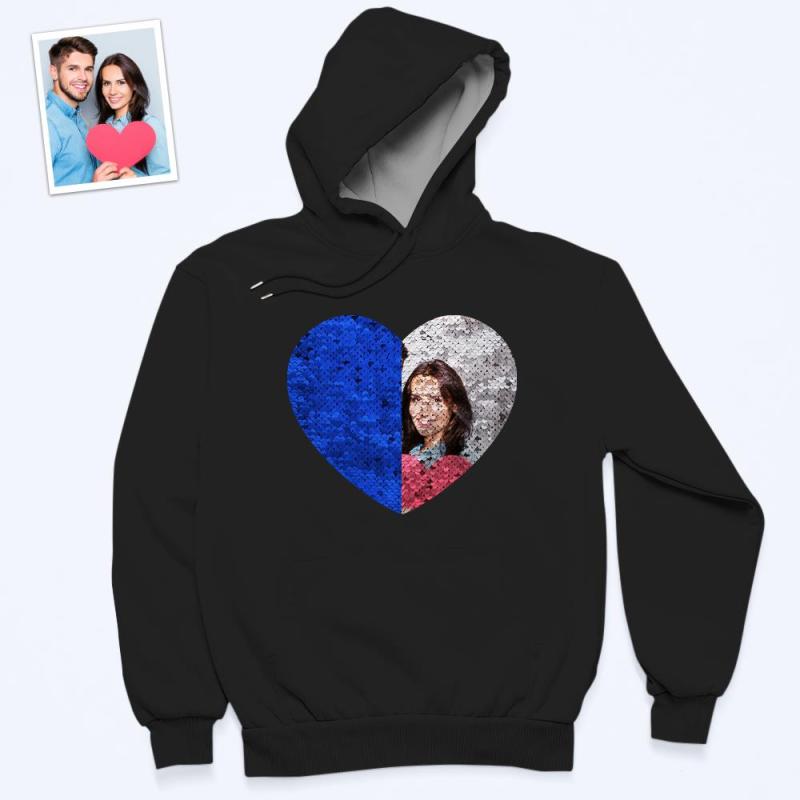 Custom Photo Blue Sequin Hoodie Heart Double Print Hoodie Gift for Men Women