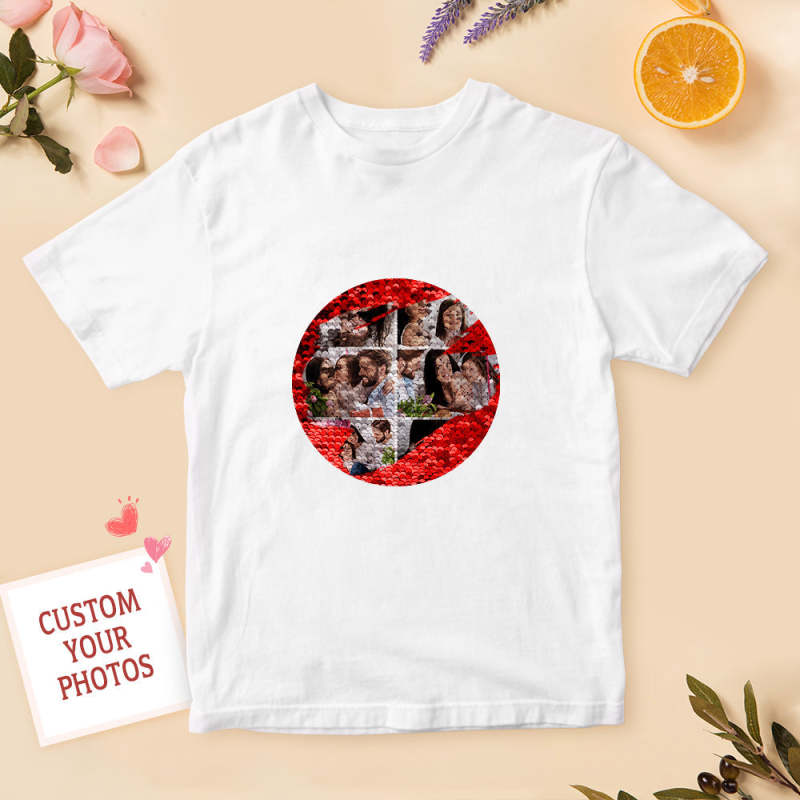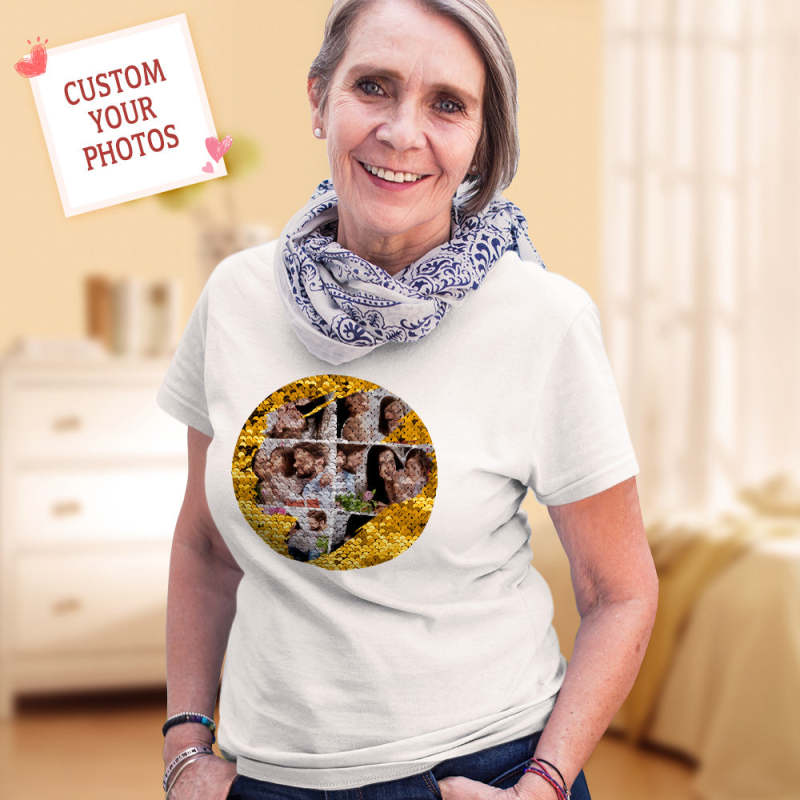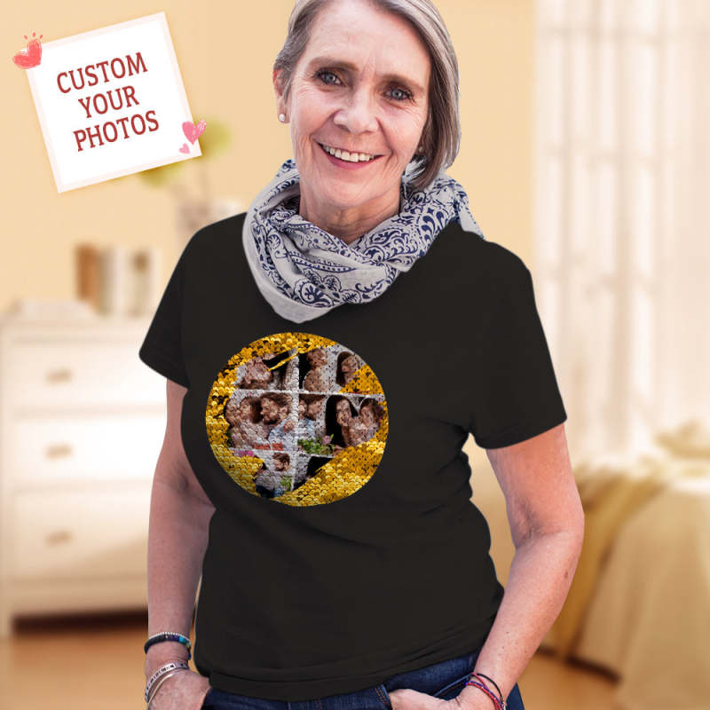 Custom Photo Collage Sequin T-shirt Personalized Sequin T-shirt with Photo