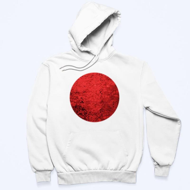 Custom Photo Flip Red Sequin Hoodie Circle-Shaped Print Hoodie Gift for Men Women
