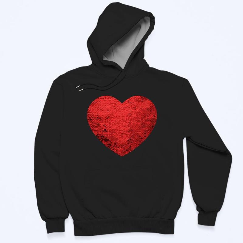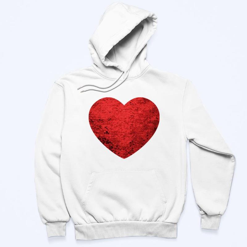 Custom Photo Flip Red Sequin Hoodie Heart-Shaped Print White Hoodie Gift for Lover