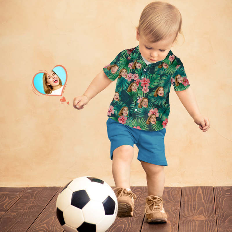 Custom Photo Hawaiian Shirt Parent-child Wears Personalized Face Hawaiian Shirt Gift Red Flowers