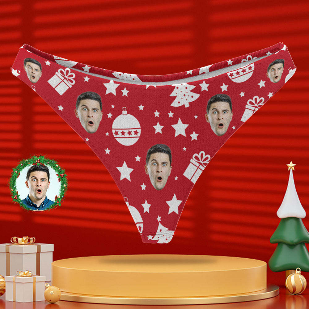 Custom Photo Panty Personalized Face Red Thong Underwear Christmas Gifts for Women