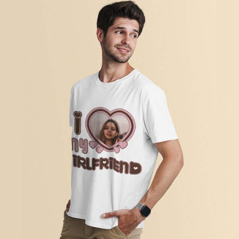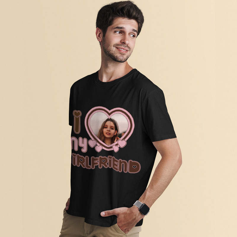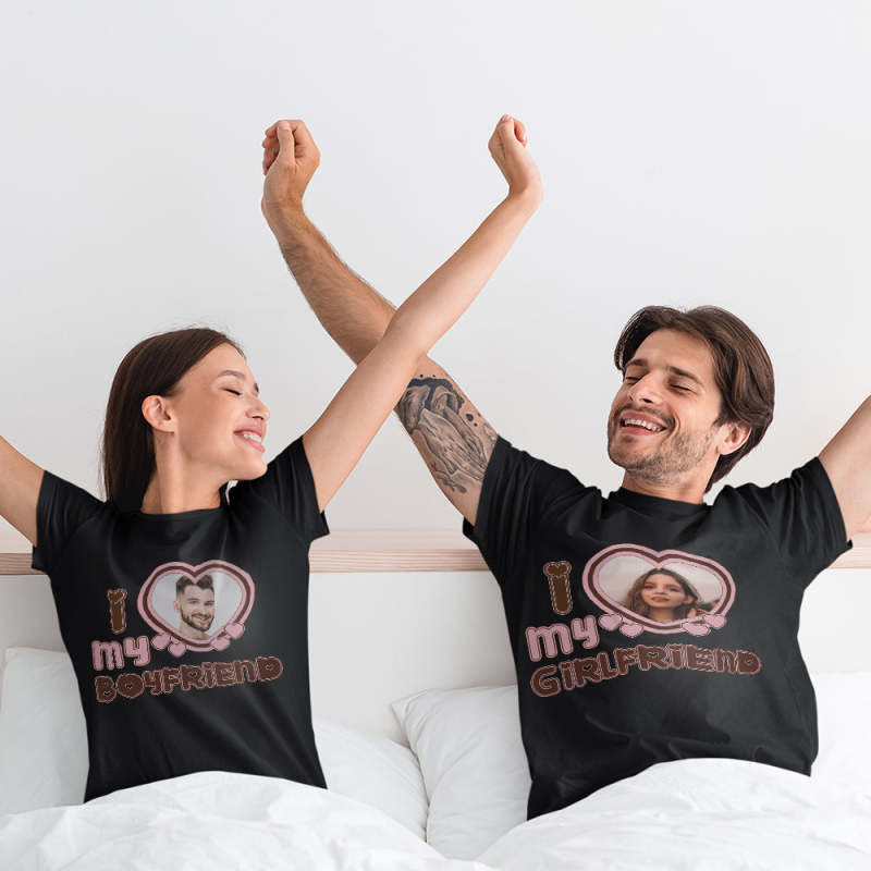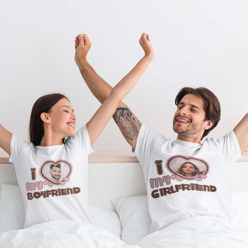 Custom Photo T-Shirt Personalized Couple T-shirt Pink Heart I Love My Girlfriend/Boyfriend