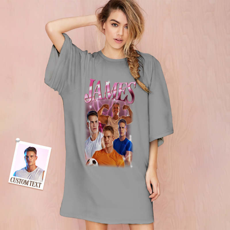 Custom Photo Vintage Nightdress Personalized Name Women's Oversized Colorful Nightshirt Gifts For Women