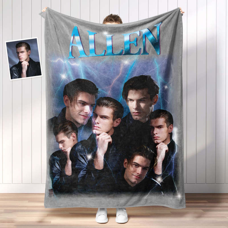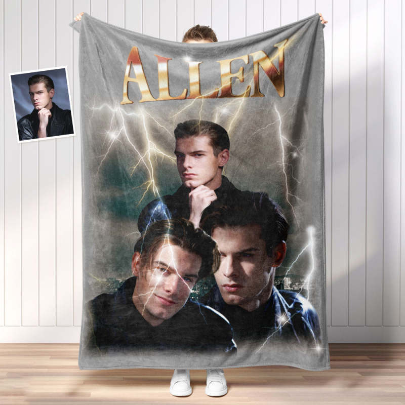 Custom Photo Vintage Tee Personalized Name Blankets Gifts for Lovers