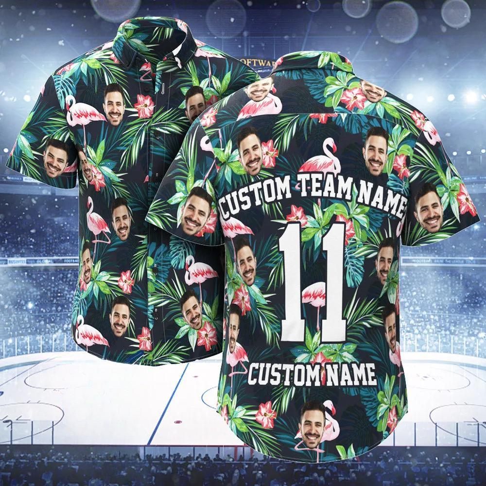 Custom Printed Hawaiian Shirt for Fans Personalized Face and Text Hawaiian Shirt Gift for fans - Flamingo
