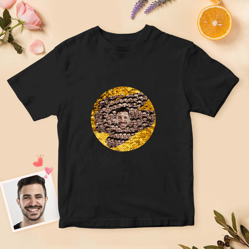 Custom Sequin T-Shirt Personalized Face Mash Sequin T-Shirt