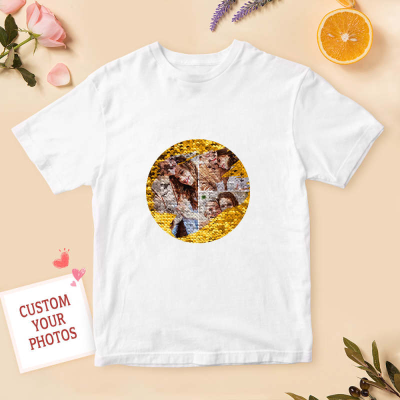 Custom Sequin T-shirt Personalized Photo Collage T-shirt Cool Mother's Day Gift