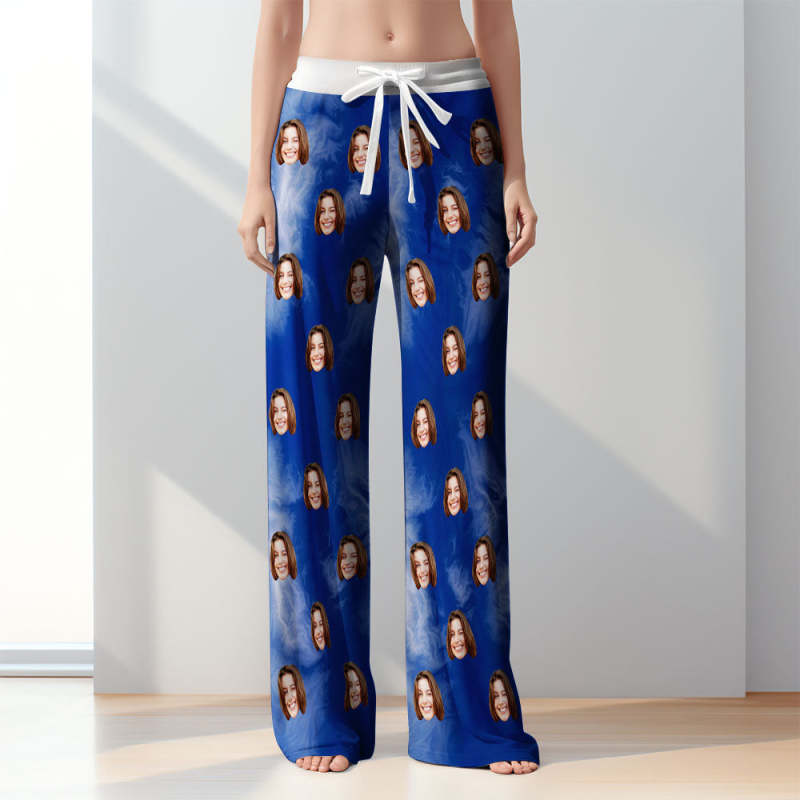Custom Women Tie-dye Pajamas Blue Tie-dye Pajamas Pants