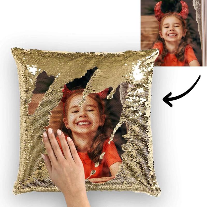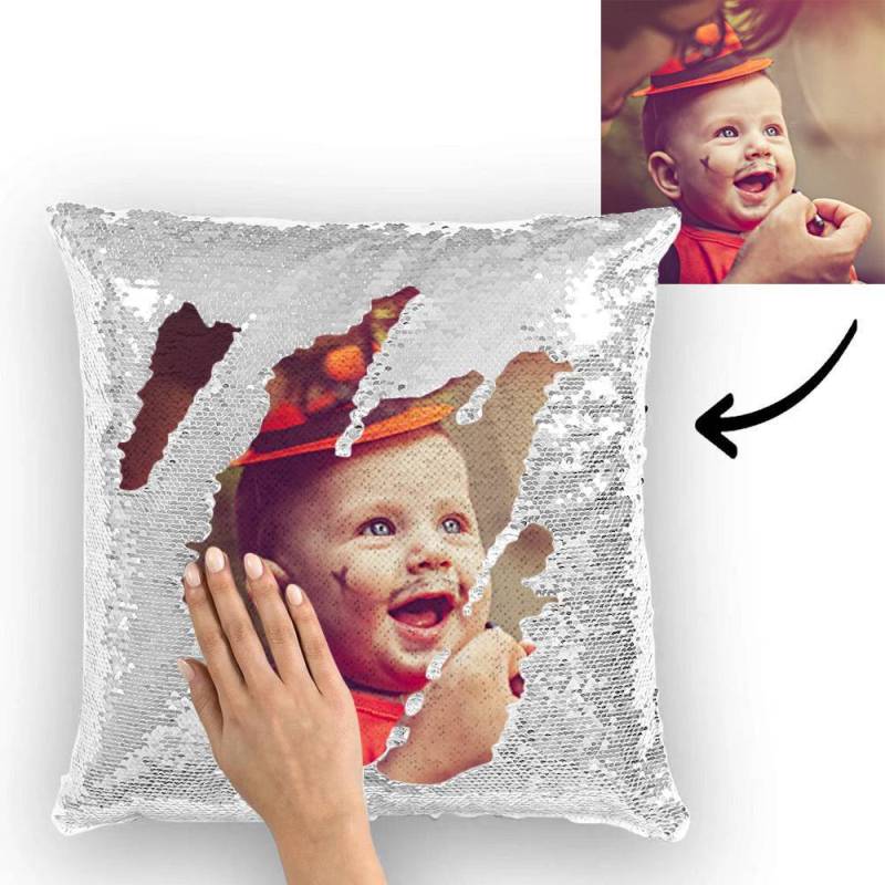 Halloween Gifts Custom Cute Baby Photo Magic Sequins Pillow Multicolor Shiny 15.75*15.75