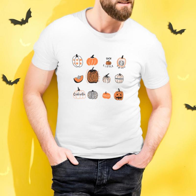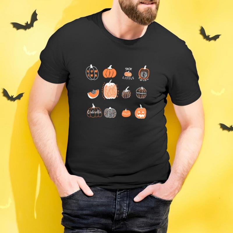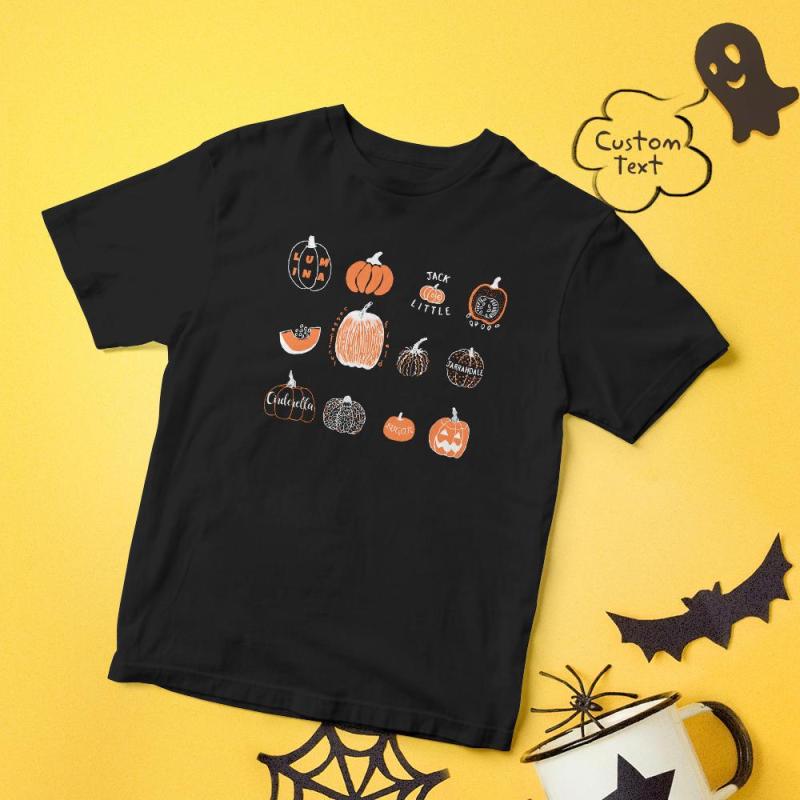 Halloween T-shirt Custom T-shirt with Text Happy Halloween Shirt Tee - Variety of Pumpkins