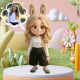 Handcrafted 3D Cartoon Figurine of a Bunny in Bright Floral Clothes for Unique Gifts