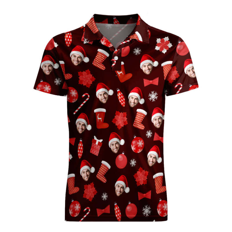 Men's Custom Face Christmas Polo-Shirts Short Sleeve Golf Tees Red Outdoor Sport Tennis Tops