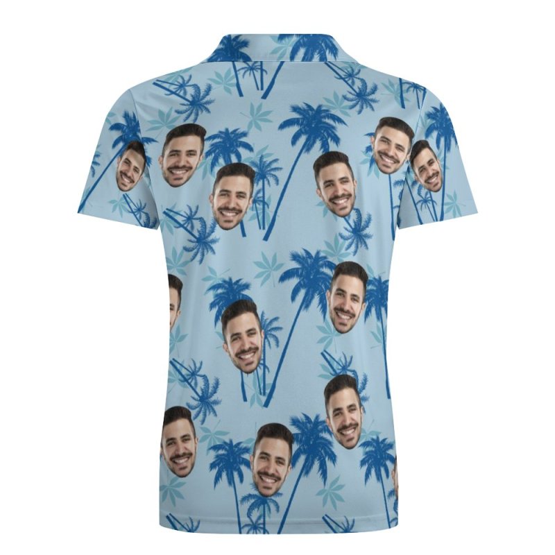 Men's Custom Face Polo Shirt Personalized Light Blue Hawaiian Golf Shirts