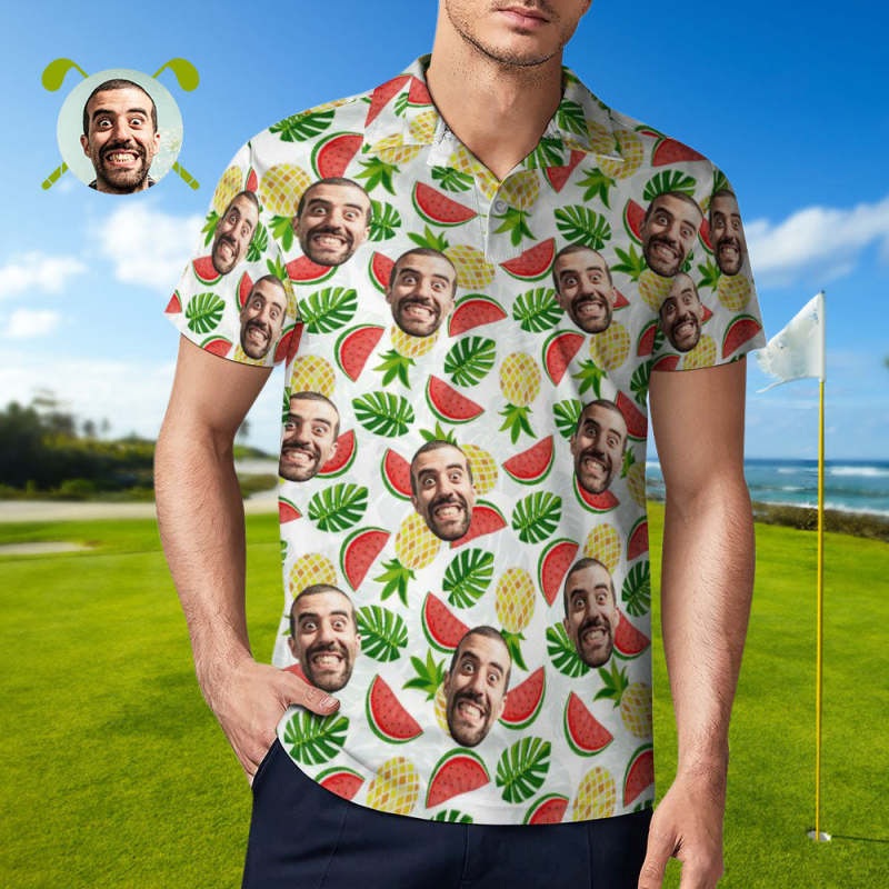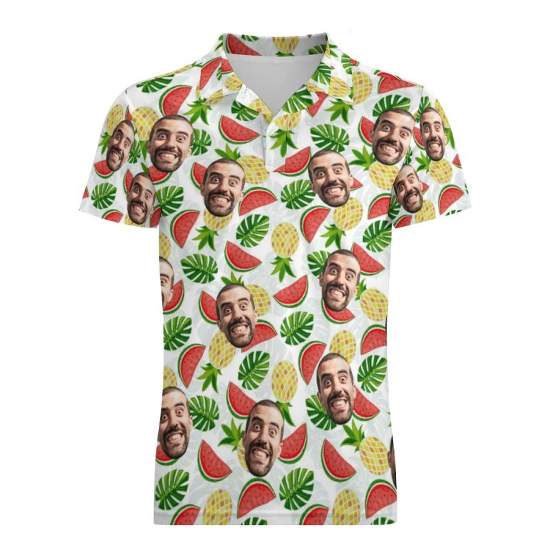 Men's Custom Face Polo Shirt Pineapples and Watermelon Personalized Hawaiian Golf Shirts
