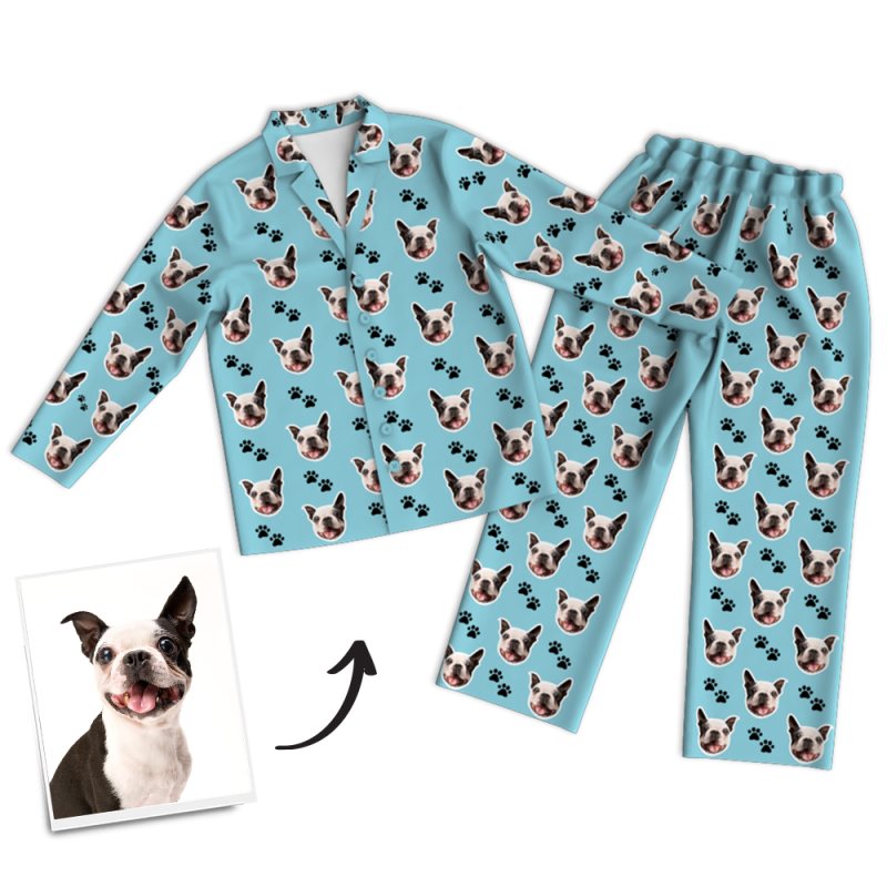Custom Dog Photo Long Sleeve Pajamas, Sleepwear, Nightwear