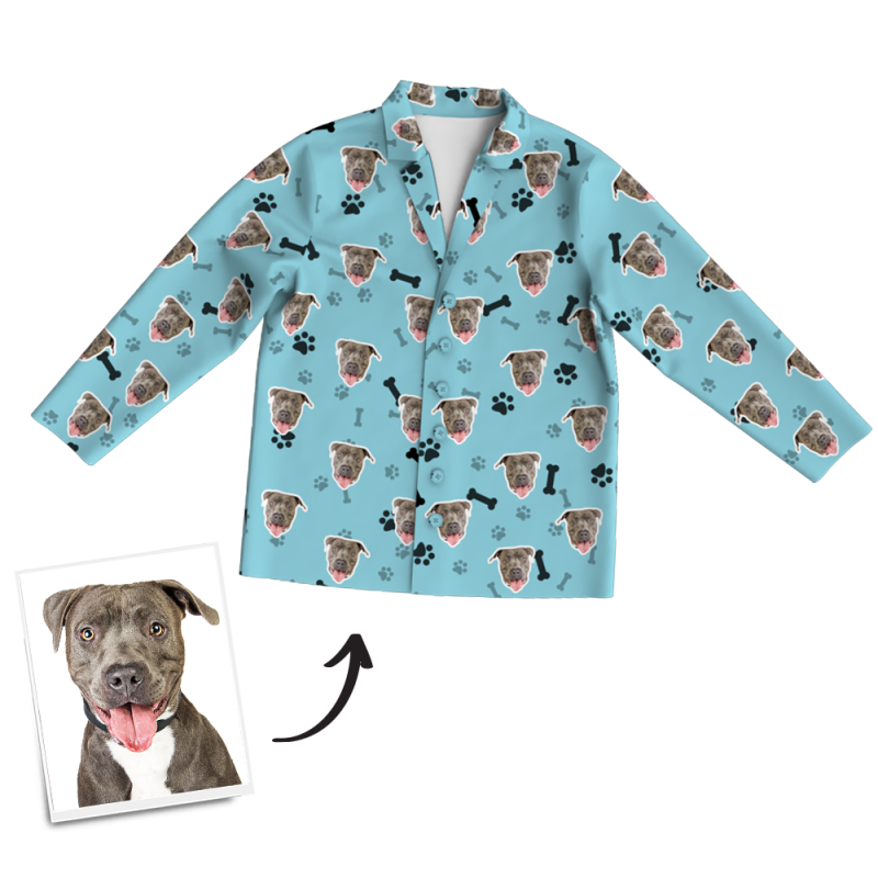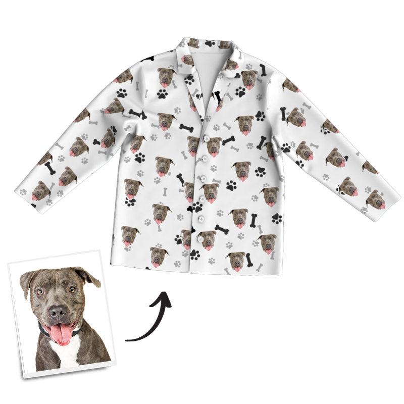 Custom Dog Photo Long Sleeve Pajamas, Sleepwear, Nightwear - Bone