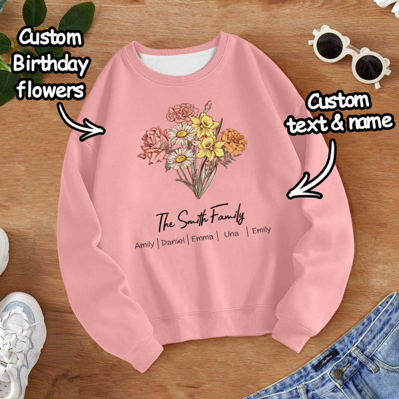 Personalized Birth Flower Bouquet Sweatshirt Custom Birth Flower Hoodie Gifts for Her