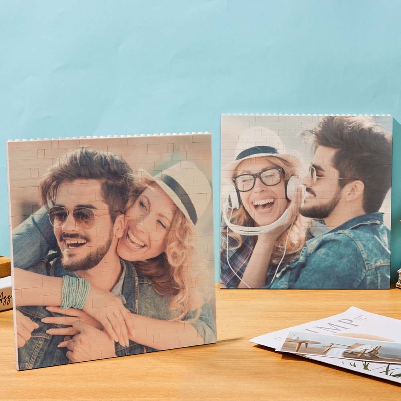 Personalized Building Block Puzzle Square Photo Brick Music Code Custom Text Frame