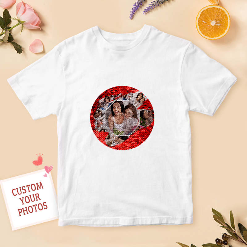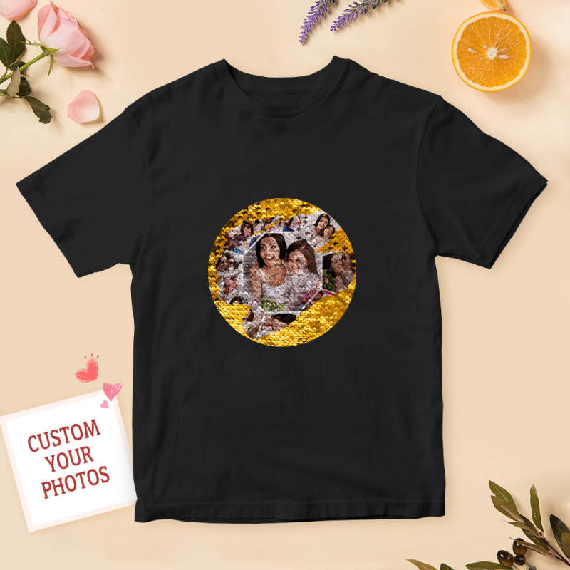 Personalized Sequin T-shirt Personalized Photo Collage Sequin T-shirt Best Mother's Day Gift