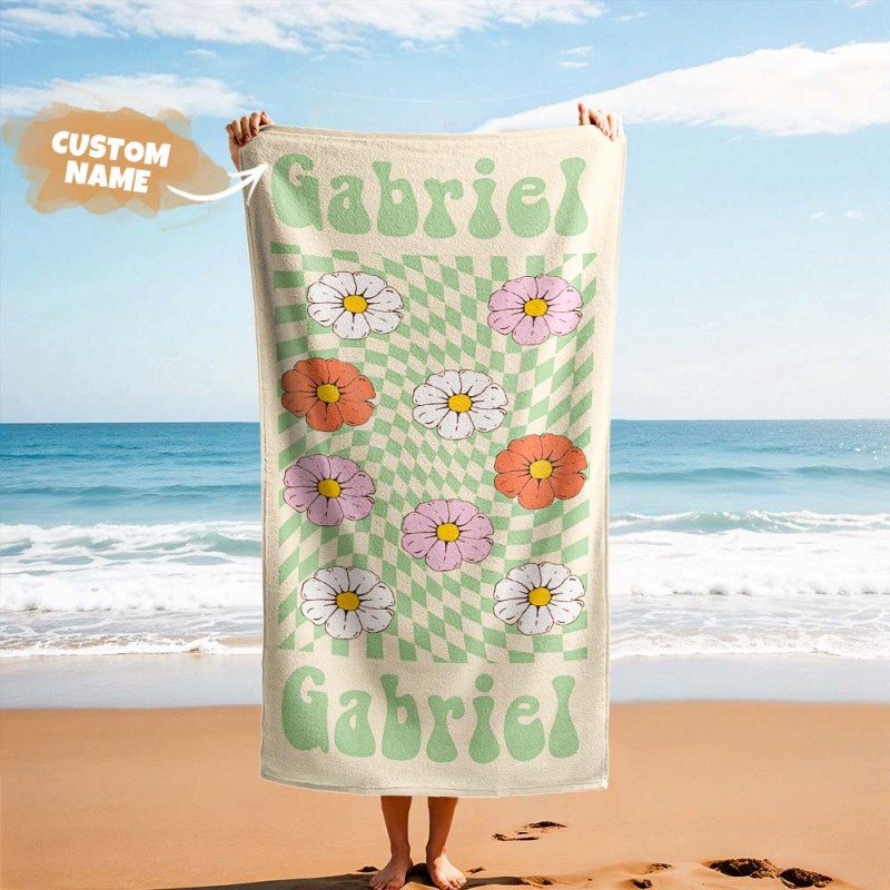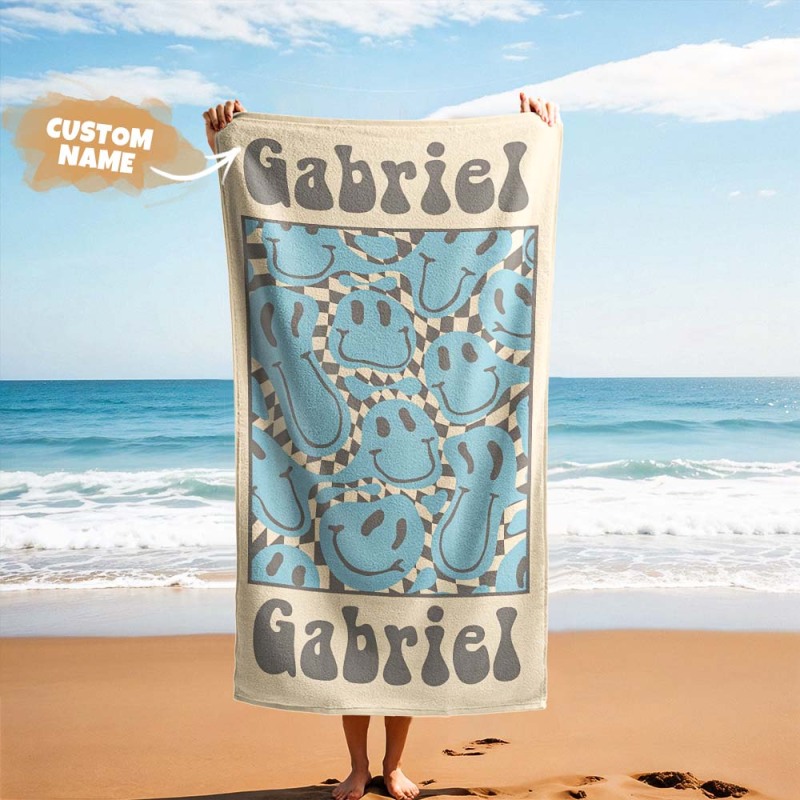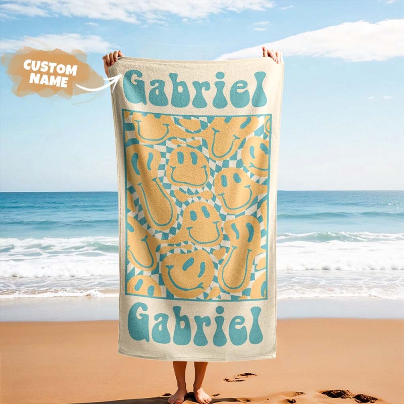 RETRO Multi Style Personalized Beach Towel Name Bath Towel Custom Pool Towel Beach Towel With Name Outside Birthday Vacation Gift