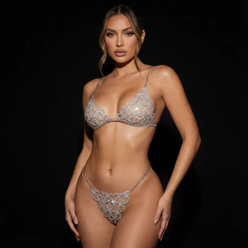 Sexy Rhinestone Lingerie Set, Luxury Bikini Body Chain, Valentine’s Jewelry Gift for Her
