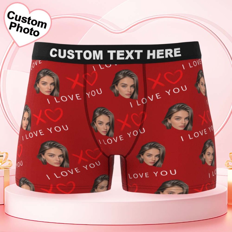 Valentine's Day Gifts Custom Face Men's Underwear I Love You XOXO Personalized Boxer Briefs Gifts for Him Waistband Text Boxers