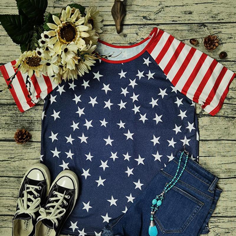 Women's Independence Day Striped Stitching Star Short Sleeve T-shirt